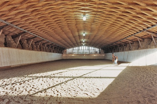 Pferdeboxen und einer gemütlichen Gaststätte im Giebel fügt